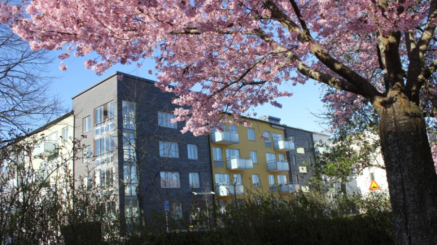 Mitt i centrala Upplands Väsby vid norra entrén till Väsby Centrum finner du vår bostadsrättsförening som är byggd som ett U med en fin innergård.