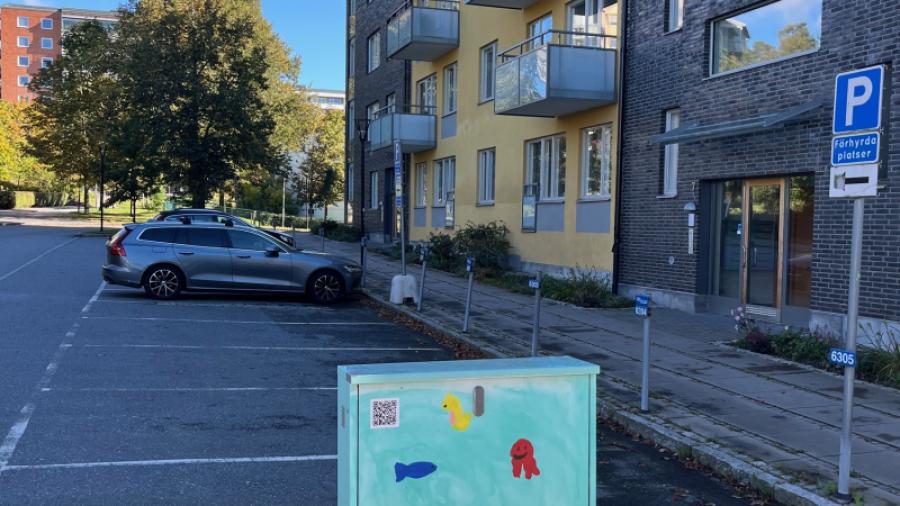 Föreningen har 44 platser inomhus i garage som nås via garageporten på Skolvägen 1. Tretton är extra breda, varav 9 bredare med laddstolpar för elbilar, 2 handikapplatser. Dessuto finns 17 platser utomhus utefter Skolvägen 1-7. x